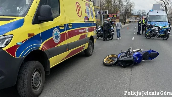 Policjanci jeleniogórskiej drogówki wyjaśniają okoliczności zdarzenia, do którego doszło 16 kwietnia 2026 roku około godziny 12.30 na ulicy Wolności. Ze wstępnych ustaleń wynika, że kierujący Mini Cooperem, wyjeżdżając z drogi podporządkowanej, nie ustąpił pierwszeństwa przejazdu motocyklistce jadącej drogą z pierwszeństwem.