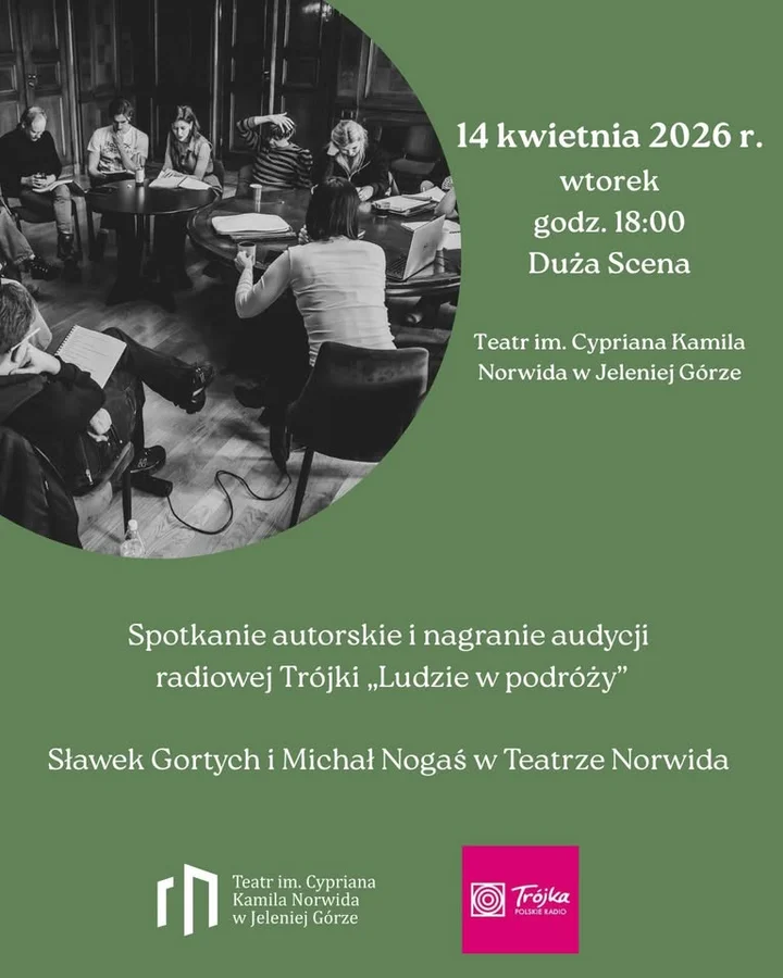 W Teatrze im. Cypriana Kamila Norwida spotkanie autorskie zmieni się w nagranie radiowe: na scenie pojawi się autor kryminałów osadzonych w Karkonoszach, Sławek Gortych, a rozmowę poprowadzi dziennikarz i wicedyrektor Programu III Polskiego Radia, Michał Nogaś. Warto wpaść — będzie o literaturze, górach i kulisach powstawania spektaklu.