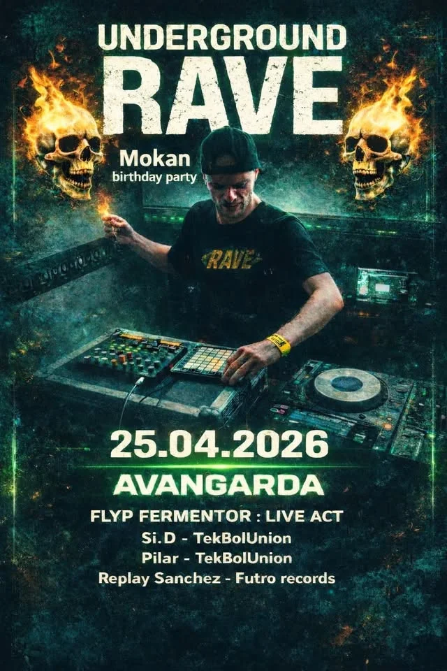 Dla kogo? Dla miłośników mocnego, industrialnego tekno, osób które cenią autentyczny undergroundowy klimat oraz fanów mocnego sound systemu. Warto zwrócić uwagę na występ Flyp Fermentora — live act zapowiada się jako punkt kulminacyjny nocy.